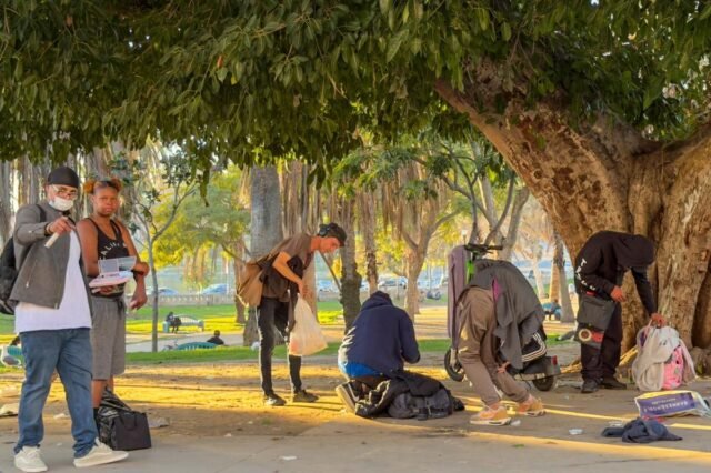 Hoy en día, las condiciones en el parque MacArthur de Los Ángeles son mucho peores.