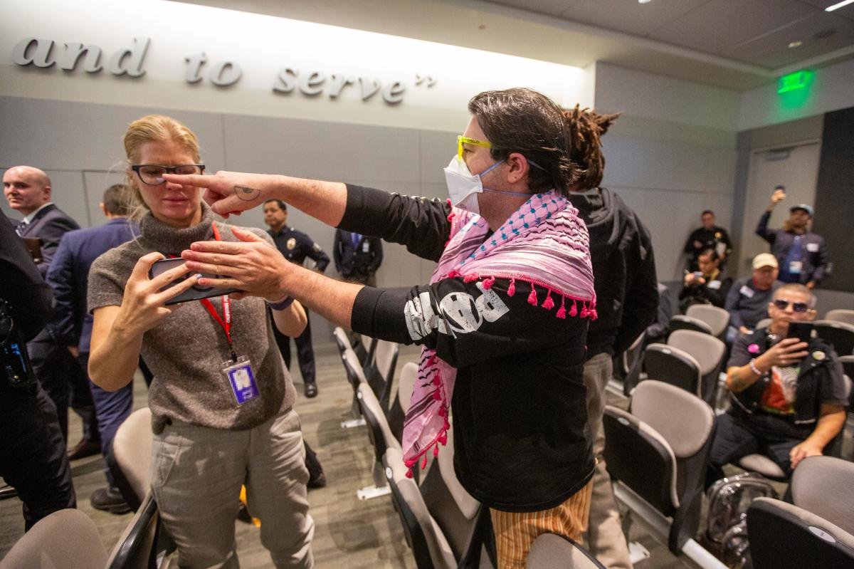 Los manifestantes habían llegado e intentaron intimidar al jefe de la policía de Los Ángeles, en lugar de expresar sus quejas de la forma habitual.