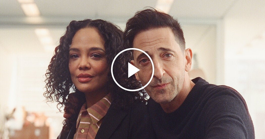 En esta escena de la obra “The Fear of 13”, representada en la oficina de T Magazine, el personaje de Tessa Thompson, Jacki, visita a Nick, interpretado por Adrien Brody, en prisión.