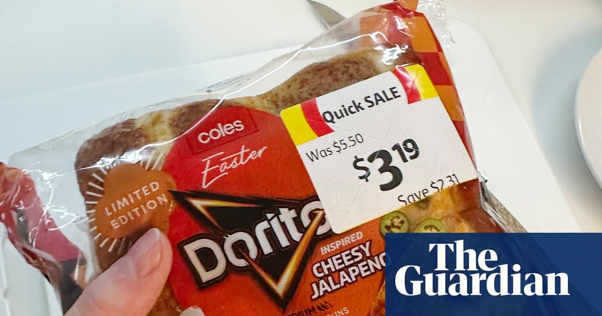 Una versión salada es la más obvia de las no-cruces, por eso la compré, pero también pasé por un estante lleno de panecillos cruzados glaseados Vovo con descuento, junto con una pila de otras galletas Arnott. Si hubiera ido a Woolworths en lugar de a Coles, podría haber encontrado varias colaboraciones de CadburyxHXB; y Aldi está haciendo un acto de pastel de zanahoria. Por cierto, Australia no está sola en nuestra aflicción por los bollos novedosos.