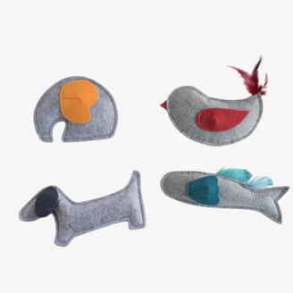 Los gatos instintivamente realizan “patadas de conejo” en los juguetes para simular que atacan a sus presas, por lo que los juguetes para patear son una manera fantástica de darles una salida para este comportamiento. El juguete para patear favorito de Juno es este pez de fieltro de Nooee Pet, que es lo suficientemente grande para divertirse y al mismo tiempo lo suficientemente liviano para que los gatos lo lleven consigo.