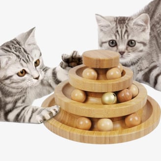 Este estilo común de juguete permite a los gatos golpear bolas alrededor de una pista cerrada, para que no terminen perdidos debajo del refrigerador. He tenido varias versiones de plástico a lo largo de los años, pero son tan ruidosas que pueden resultar exasperantes para los oídos humanos. Es por eso que me atrae la pista de bolas para gatos de madera de DoogCat, que es significativamente más silenciosa, está hecha de materiales renovables y está diseñada para durar.