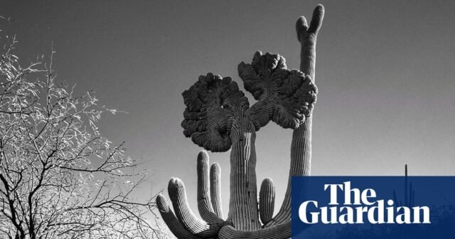 “Pueden alcanzar la altura de un edificio de seis pisos y vivir más de dos siglos”, dice Cyr. “Sus primeros brazos no suelen aparecer hasta que la planta tiene 70 años”. Este ejemplo en particular presenta una rara mutación: “Según el Servicio de Parques Nacionales, de los 2 millones de saguaros estimados en el parque, sólo se han encontrado unos 75 saguaros con cresta”, añade Cyr. “No podemos evitar antropomorfizar estas plantas: sus siluetas a menudo recuerdan a personas con los brazos extendidos. Este cactus parece proclamar, predicar, señalar hacia afuera y hacia arriba”.