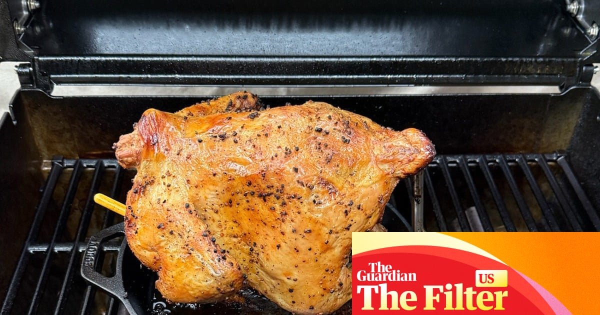 Deslizar el pollo sobre la varilla (o “percha”) es fácil; quitar el pájaro caliente es más complicado ya que se pega un poco a la percha, pero se puede hacer con un par de alicates. PoulTree recomienda asar el pollo en una sartén vacía; Se podría pensar que cocinar con verduras en la sartén sería más eficiente, pero cuando probé esto, generó demasiado vapor como para darme la piel crujiente que buscaba.