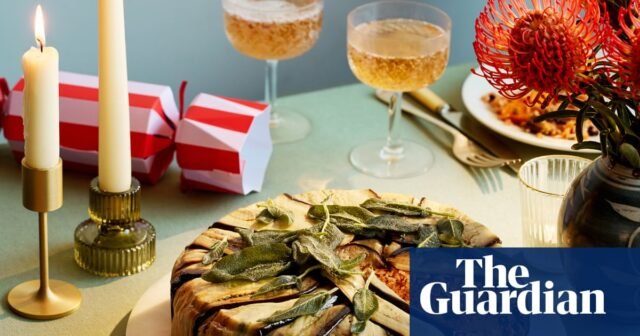 lEl año pasado escribí sobre cómo perdí mi fandango de comida, lo recuperé y ahora estoy simplificando las cosas, especialmente en la cocina. Esto significa que ya no hago fiestas con muchos artículos, ni siquiera en Navidad, pero todavía me encantan los platos de autor, especialmente aquellos que toda la mesa, independientemente de sus necesidades dietéticas, puede disfrutar junta. La oferta de este año es una pieza central: un timbal de berenjena (timbal significa tambor) lleno hasta el borde de verduras, arroz, nueces, frutas, especias y, si lo desea (debería hacerlo), uno de los mejores quesos de Normandía: el Boursin.