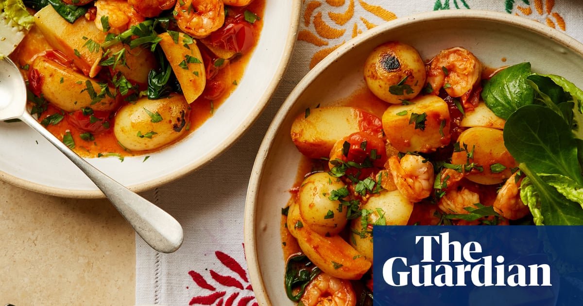 Receta fácil y rápida de Georgina Hayden de guiso de langostinos ahumados, patatas nuevas y espinacas | Alimento